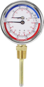 Designed for hot water boiler systems. Two-Gauges-In-One... they